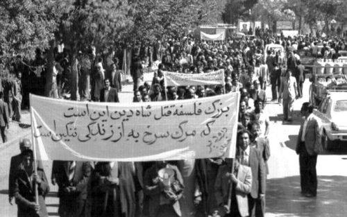 شعارها ابتدائاً حول زندانیان سیاسی و آزادی آنان بود. کم کم رنگ و بوی ضد شاه گرفت. اما همانند یک شعله کوچکِ آتش که تبدیل به زبانههای سنگین میشود، فریاد “مرگ بر شاه” در سطح شهر پیچاند.